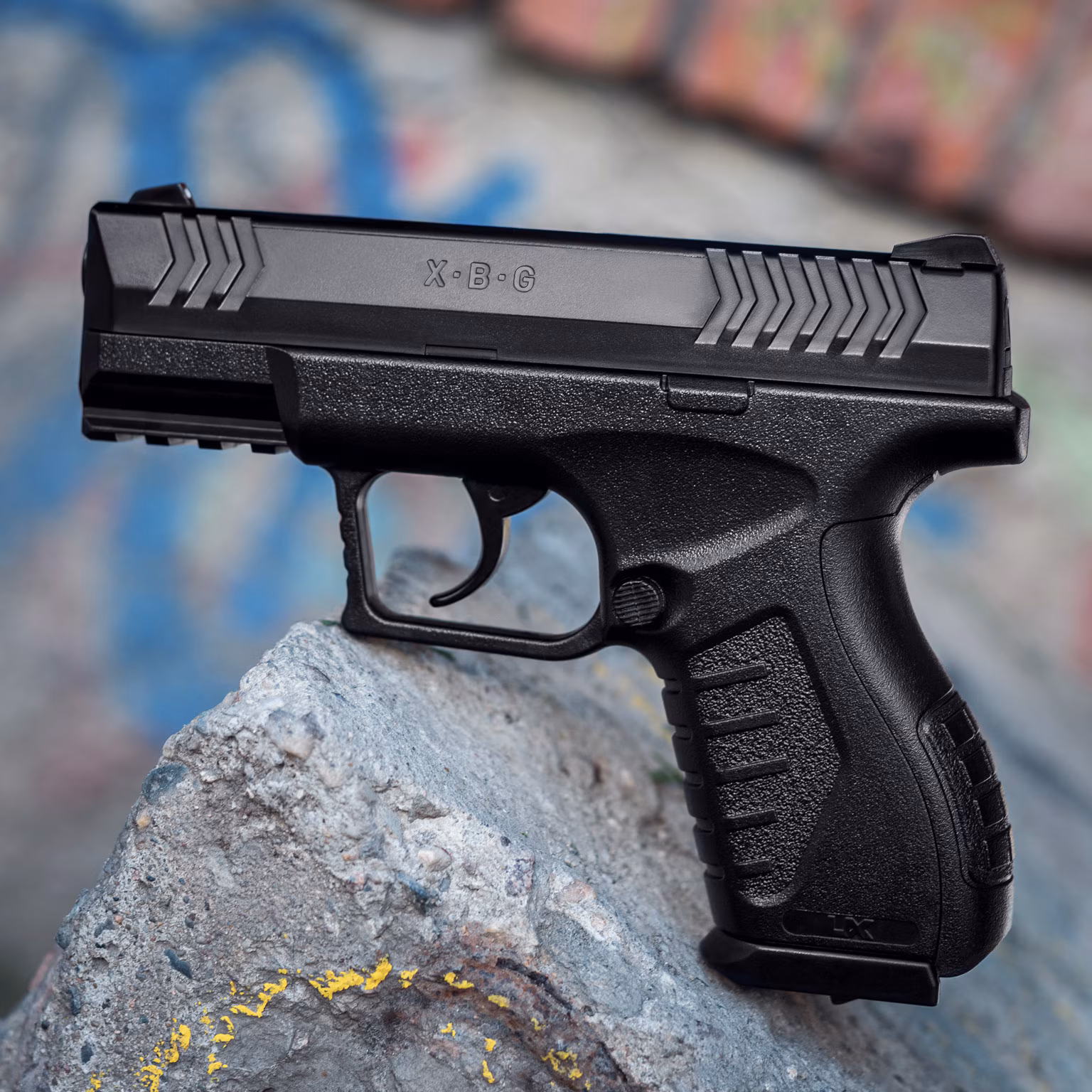 Umarex XBG 4,5 mm BB to krótka wiatrówka o napędzie gazowym z kapsuł CO2 oraz polimerowej konstrukcji. Model swym wyglądem nawiązuje do popularnych konstrukcji marki Springfield XD i cechuje się dobrym spasowaniem i wykończeniem detali, a także niewielkim ciężarem, co zawdzięcza konstrukcji z tworzywa.