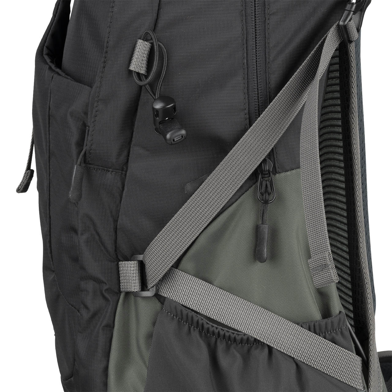 Gwarancję indywidualnego dopasowania nadają: regulacja kąta nachylenia szelek, regulowany pas piersiowy oraz regulowany, szeroki pas biodrowy. Wszyte paski kompresyjne z klamrą pozwolą Ci skompresować bagaż i ułatwią zachowanie stabilizacji – plecak nie będzie przeciążony w żadną ze stron. Frontową część wyposażono dodatkowo w regulowane gumki z możliwością demontażu, ułatwiające montaż sprzętu trekkingowego.