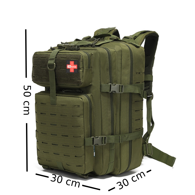 - Plecak jest wyposażony w system laser cut i panel molle, co umożliwia łatwe przymocowanie dodatkowych akcesoriów i przyborów medycznych w miejscach, gdzie są najbardziej potrzebne.