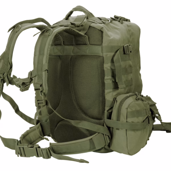 Komora główna wyposażona jest w wbudowaną kieszeń na laptopa lub camelbak (dwa otwory na rurkę zamykane na rzep). Zasuwana z boku duża kieszeń przednia pomieści dodatkowy ekwipunek. Mała zasuwana kieszeń przednia, wewnętrzna kieszeń siatkowa umożliwiają organizację mniejszych akcesoriów. System Molle daje możliwość przytroczenia dodatkowych zasobników.