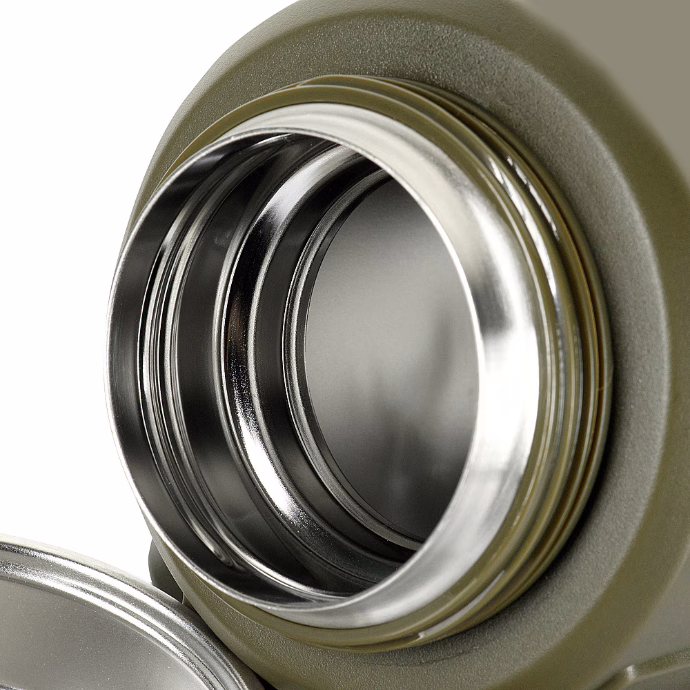 Termos próżniowy o pojemności 1600 ml. Wykonany z trwałej stali nierdzewnej pokrytej ochronną powłoką w kolorze oliwkowym. Zastosowany materiał nie pochłania smaku ani zapachu przenoszonych płynów.