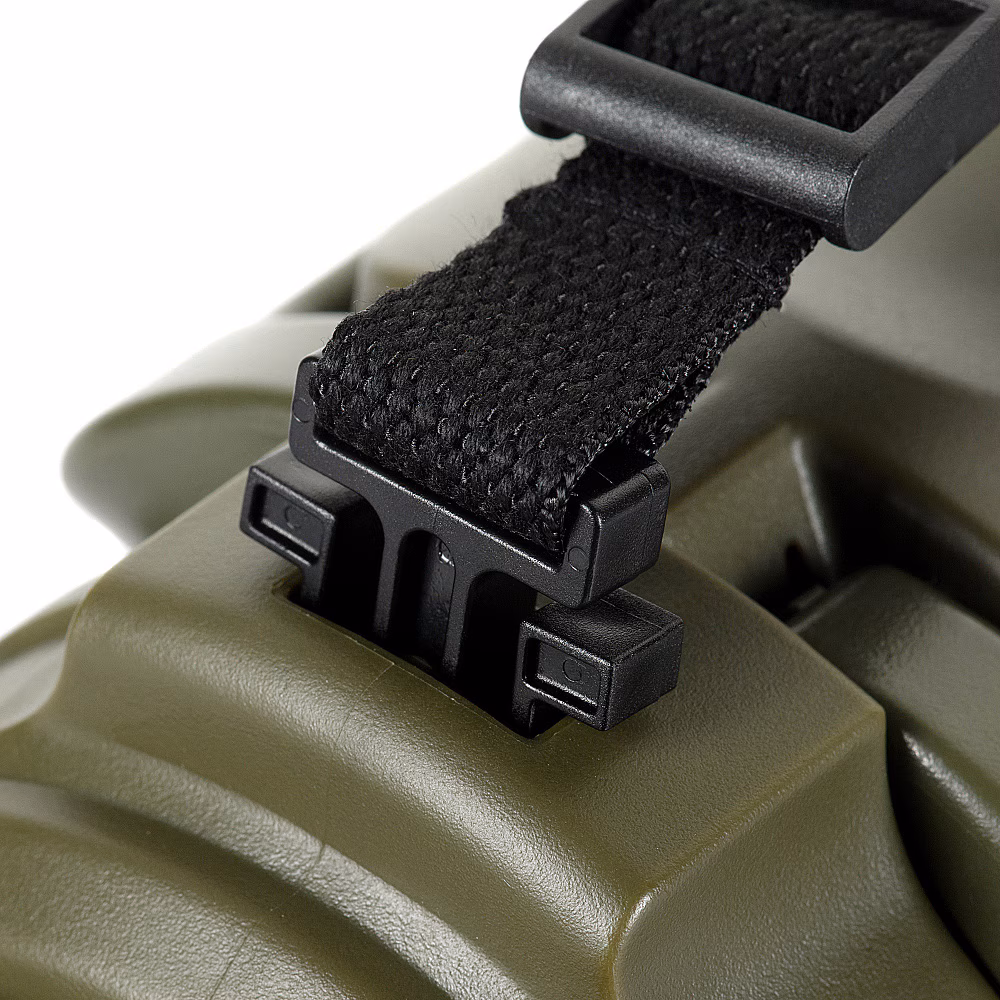 Transport termosu ułatwia załączony w zestawie pas o regulowanej długości. Taśma wpinana jest za pomocą klamer typu fastex w korpus termosu. Otwierany uchwyt pozwala na wygodne przenoszenie lub troczenie termosu.